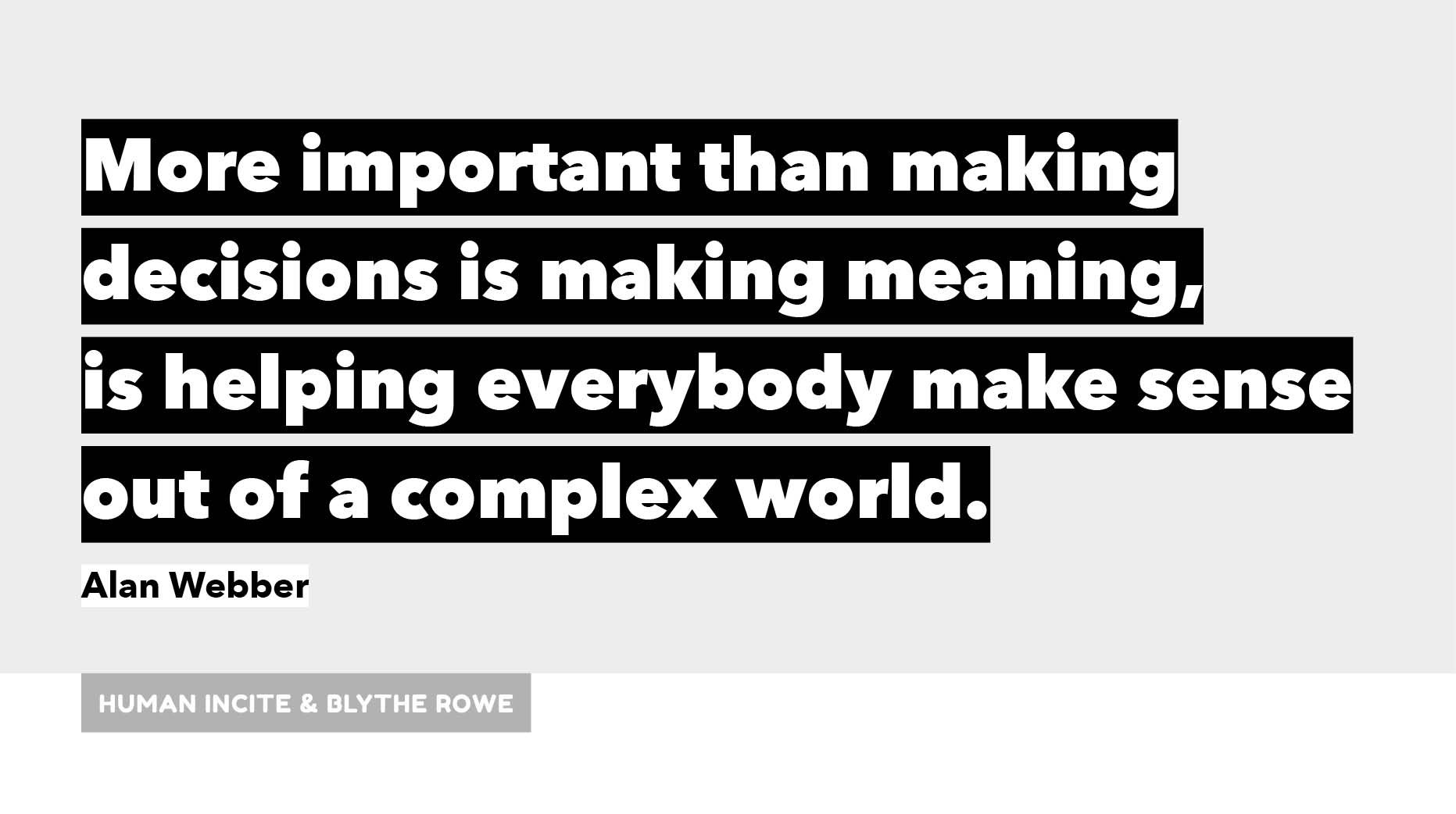 Humanincite On Twitter Here S Our Quote Of The Day More Important Than Making Decisions Is Making Meaning Is Helping Everybody Make Sense Out Of A Complex World Alan Webber The Co Founder